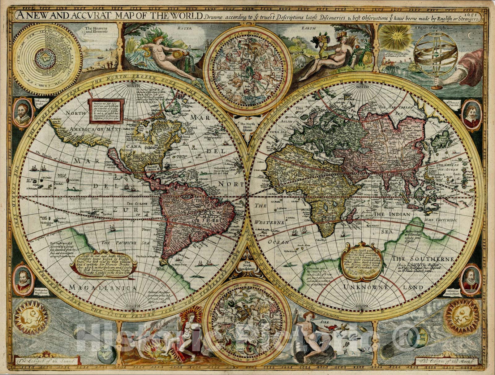 Historic Map : A New and Accurate Map of the World, 1651, John